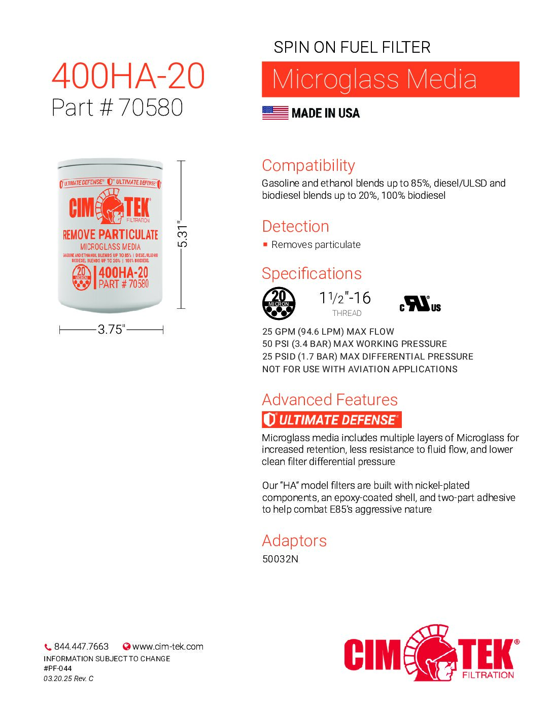 • Fuel Type: Straight Gasoline, Ethanol Blends up to 25%, Diesel/ULSD, Ethanol Blends up to 85%, Biodiesel Blends up to 100%